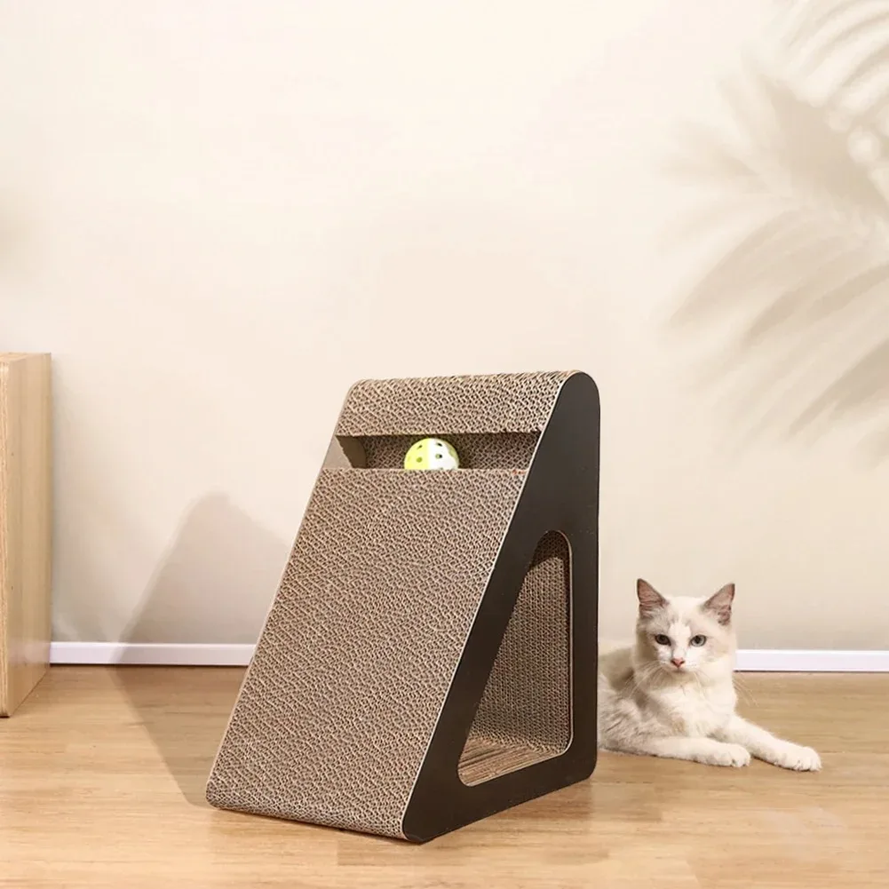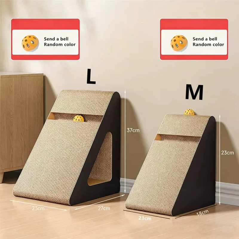 Design Inteligente 2 em 1: Funciona como um arranhador externo de alta performance e como um esconderijo interno, onde os gatos se sentem protegidos e seguros.